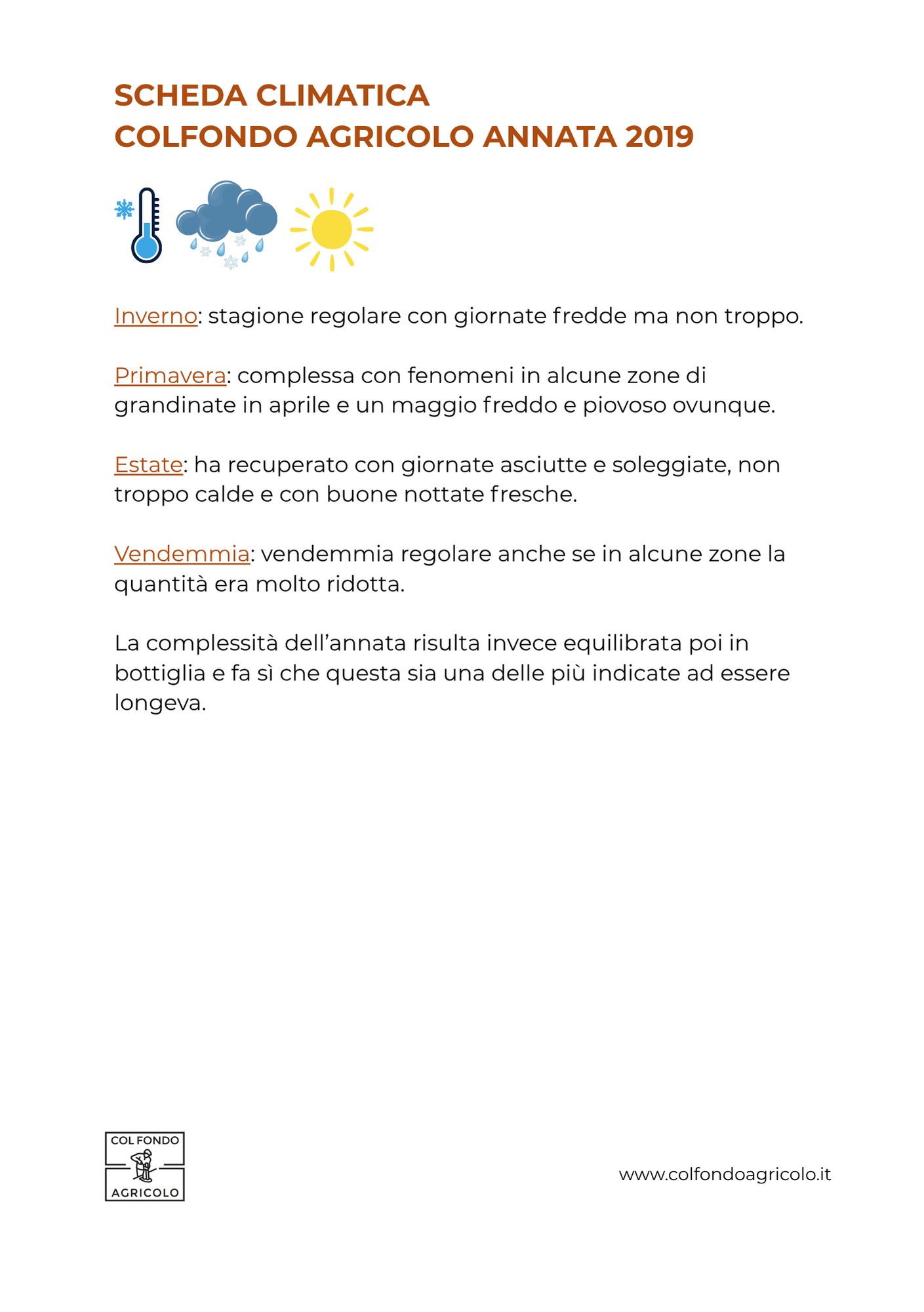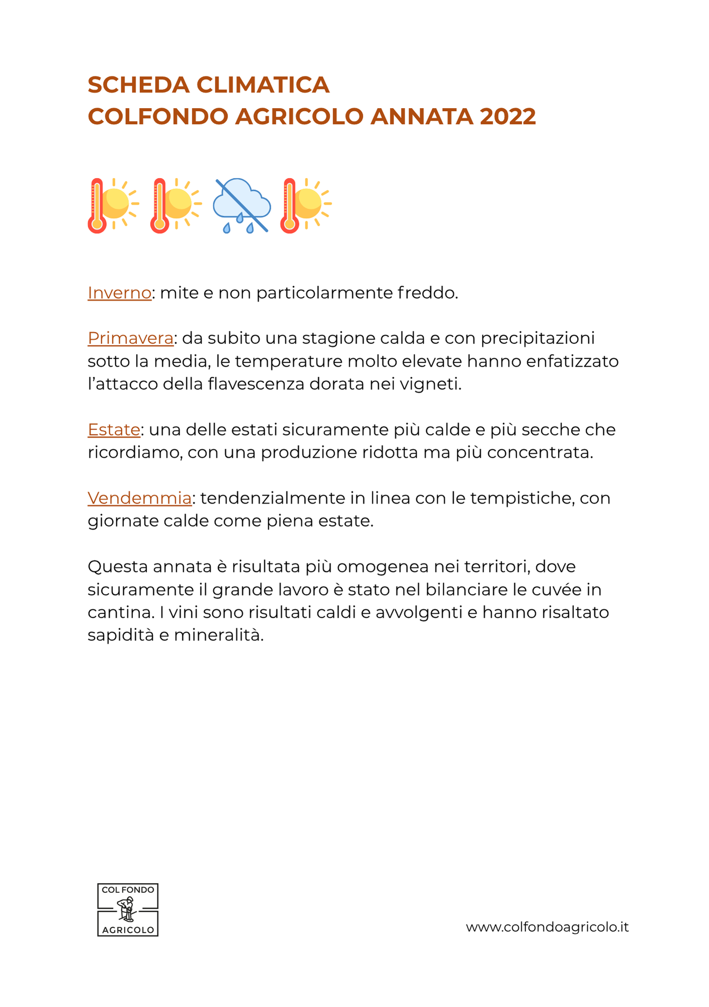 Ce ne siamo resi conto compilando queste schede climatiche, che se pur sintetiche e pensate proprio per una rapida lettura, aiutano a focalizzare l’andamento metereologico che ha portato poi quell’uva in quella bottiglia.